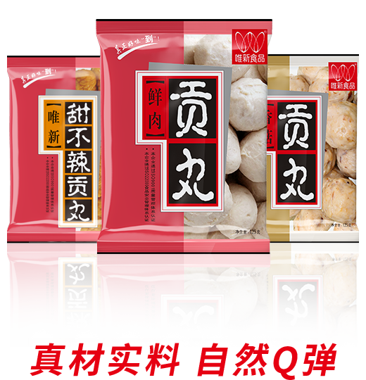 • 選擇蛋白質(zhì)含量及新鮮度高的豬后腿肉為原料,模擬手工捶打的打漿工藝,再經(jīng)煮制、冷卻、速凍工藝才可生產(chǎn)出自然脆彈的唯新貢丸,是居家佐餐、火鍋的美味食品。近年來(lái)我們還研發(fā)生產(chǎn)了香腸、蝦滑、魚丸、牛肉丸等大眾喜愛(ài)的家庭火鍋料速凍食品。